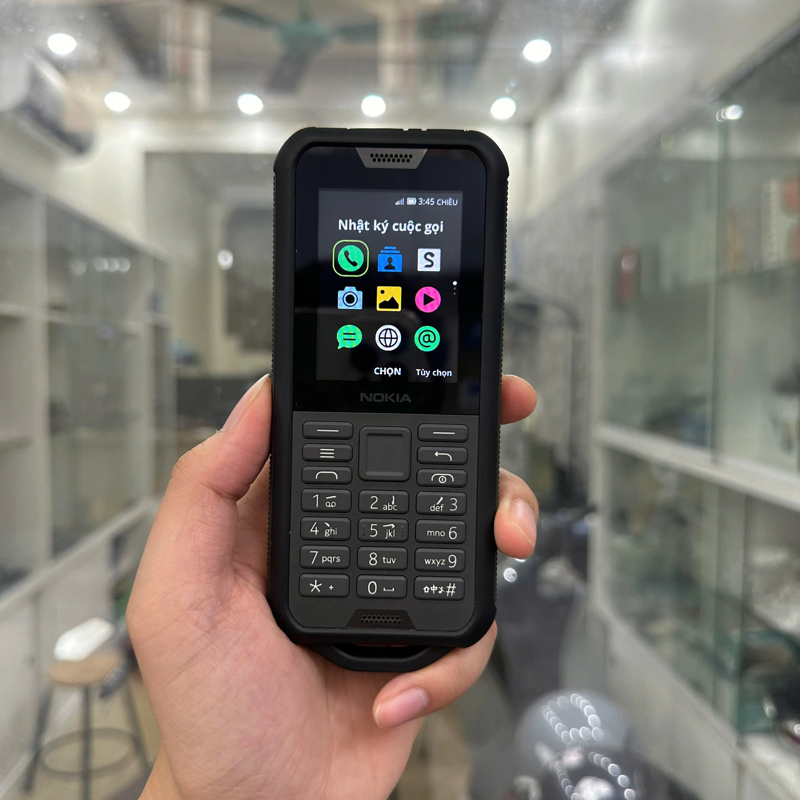 Máy có thiết kế chắc chắn, cứng cáp và cực nam tính. Phím bấm được bọc cao su cao cấp chắc chắn. Trang bị màn hình 2.4 inh đủ sử dụng.